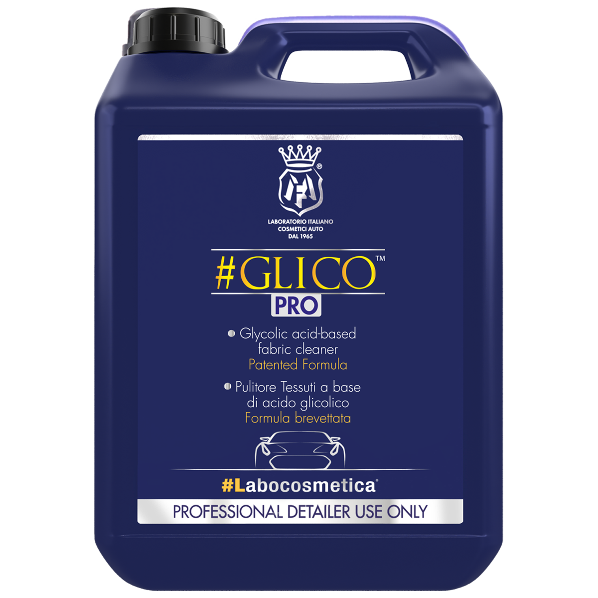 GLICO thanks to its formula with glycolic acid, the same used for personal cosmetics, is an innovative product. It is the first in its class to be patented, ideal for removing inorganic residues, minerals, dust and mixed dirt stains from seats and rugs.
