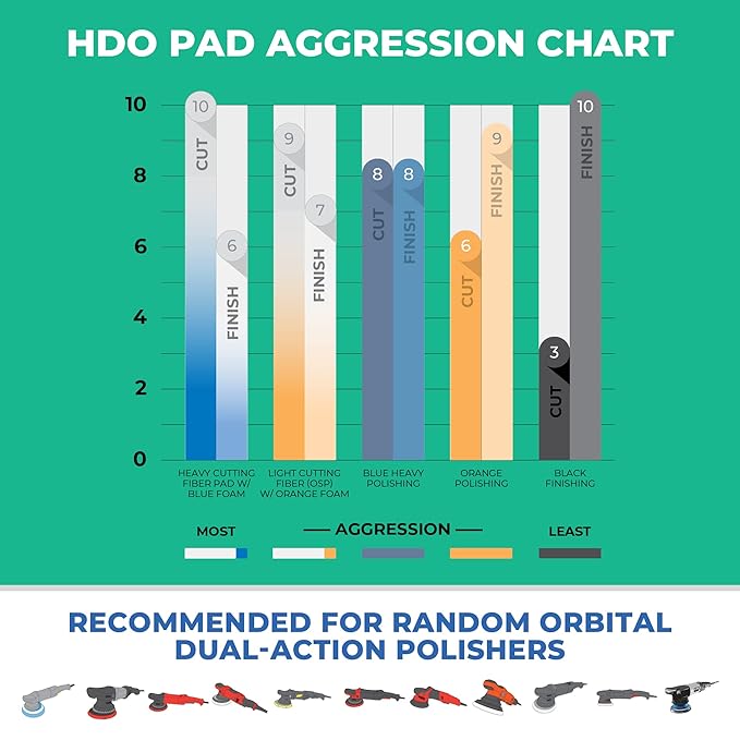 • Long-Lasting: These HDO foam Finishing pads fit 3" backing plates using a hook-and-loop attachment and are designed for long-stroke dual-action polishers. Sturdy with tapered edges, our heavy-duty polish pads for car detailing prevent pad rolling to help minimize haze.